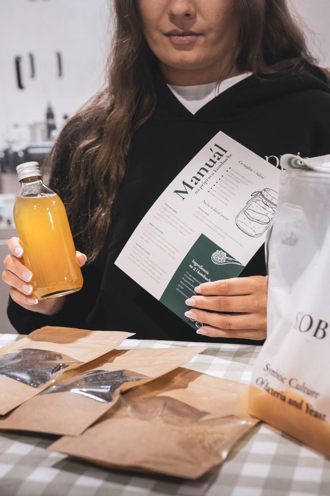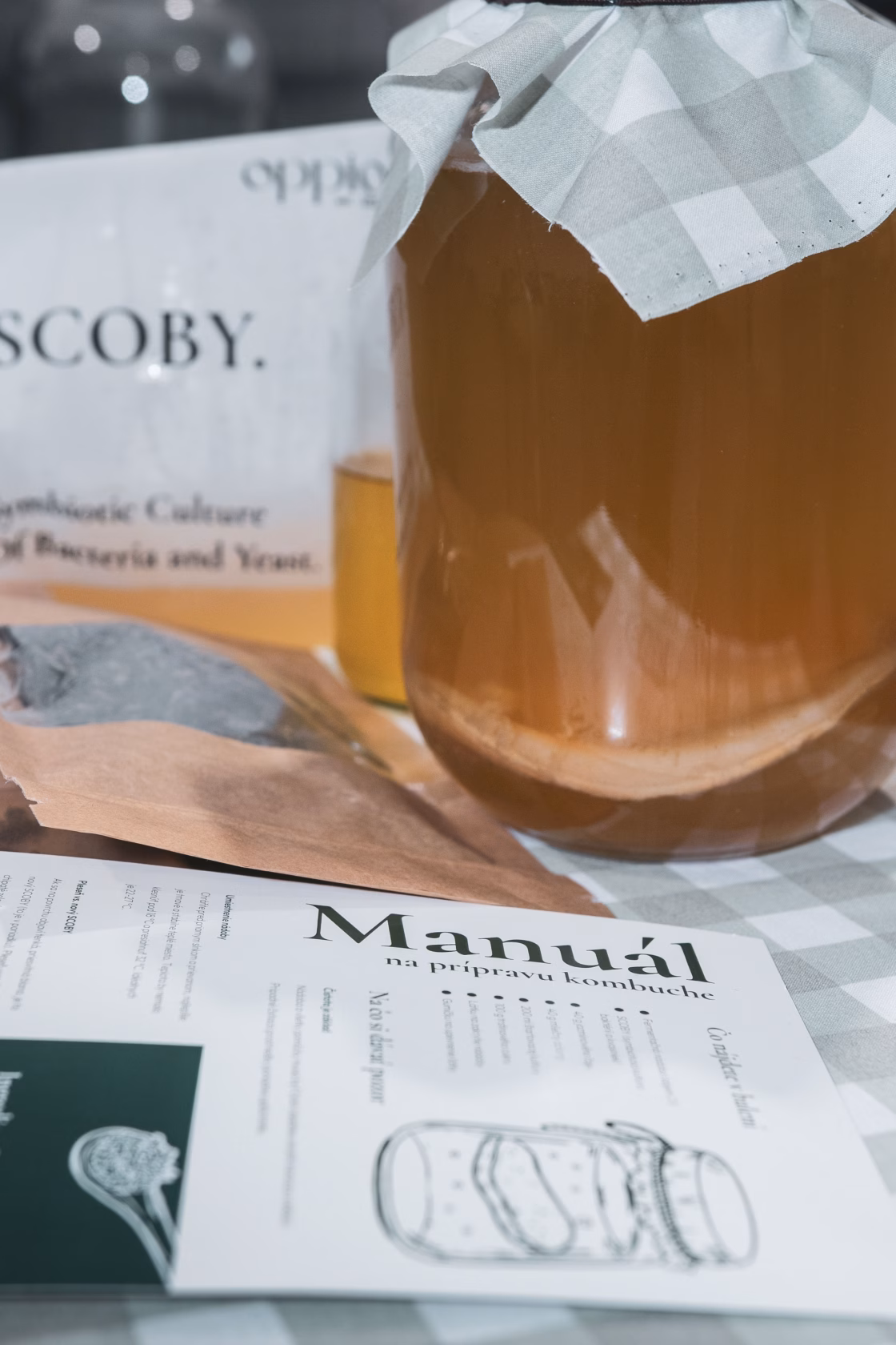 kompletný balík, v ktorom nájdeš všetko, čo potrebuješ na svoju prvú domácu kombuchu. Nájdeš náš overený recept, podľa ktorého pripravujeme kombuchu aj my.